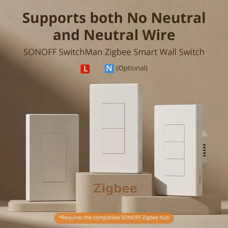 SONOFF ZBM5 SwitchMan Zigbe Smart Wall Switch 120W Supports No Neutral and Neutral Wire Detach Relay Mode Works with Home Assistant
