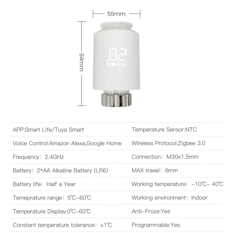 TRV06 Tuya Smart Zigbee3.0 Thermostat Radiator Valve Actuator Smart TRV Programmable Temperature Controller Voice Control with Alexa Google Home