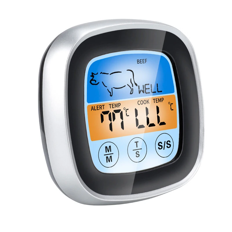 TS-62 Touch Screen BBQ Thermometer Digital Kitchen Meat Probe with LCD Display 8 Cook Mode Countdown Overtamperature Alarm Function for Grilling BBQ Cooking Meat