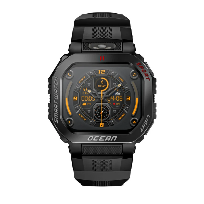 LOKMAT OCEAN GT 1.75-inch HD Screen Flashlight Compass AI Voice Assistant 3ATM Waterproof bluetooth Call Heart Rate Blood Oxygen Monitor Sleep Monitoring Multi-sport Modes Smart Watch