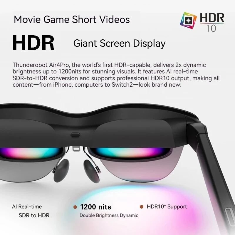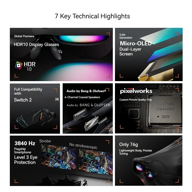RayNeo Air 4 Smart AR Glasses Head-mounted TV with 1200 Nits HDR10 1080P 120Hz Micro OLED Portable Display with B&O Audio for iPhone Gaming Movies XR Device Eyes Protection