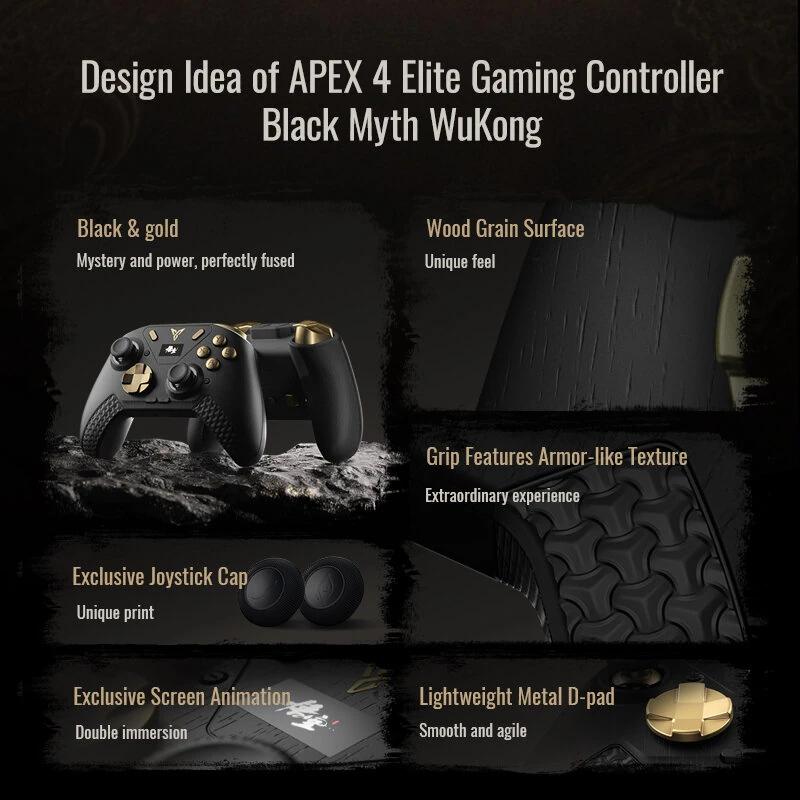 Black Myth: WuKong FLYDIGI APEX 4 Elite Gaming Controller Forced Feedback Joystick and Trigger Wireless Gaming Controller with Interactive Smart Screen Six-axis Gamepad Support 2KHz Polling Rate for PC/Switch/Phone/TV