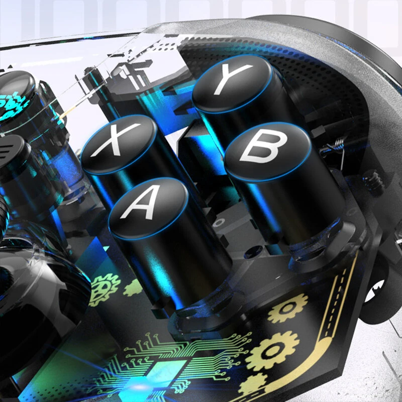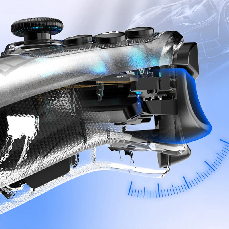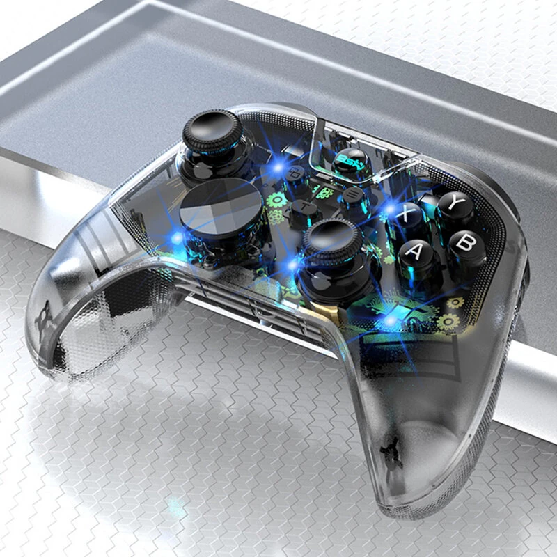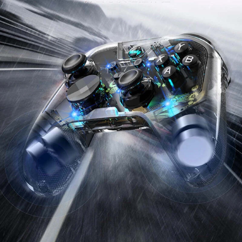 G6 Pro Wireless bluetooth Transparent Gaming Controller with Hall Trigger Carbon Film Joystick RGB Lighting Six Axis Gyro Vibration Macro Back Keys for PC Switch Android iOS