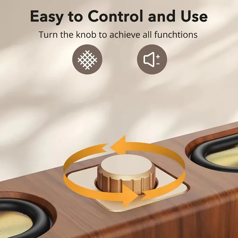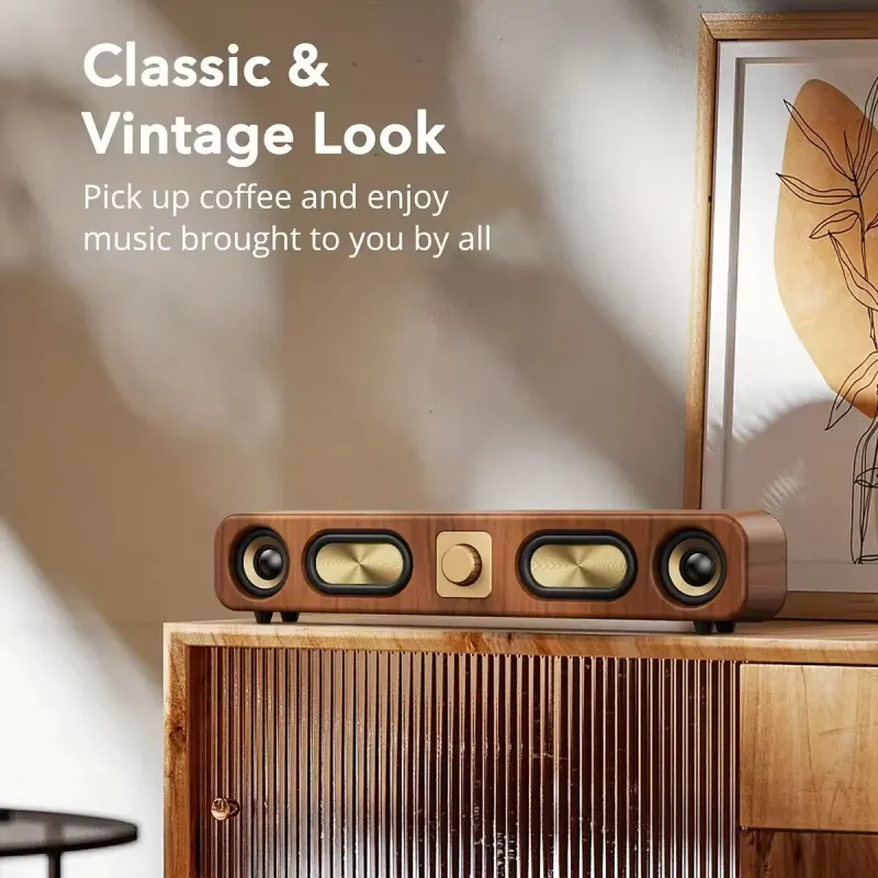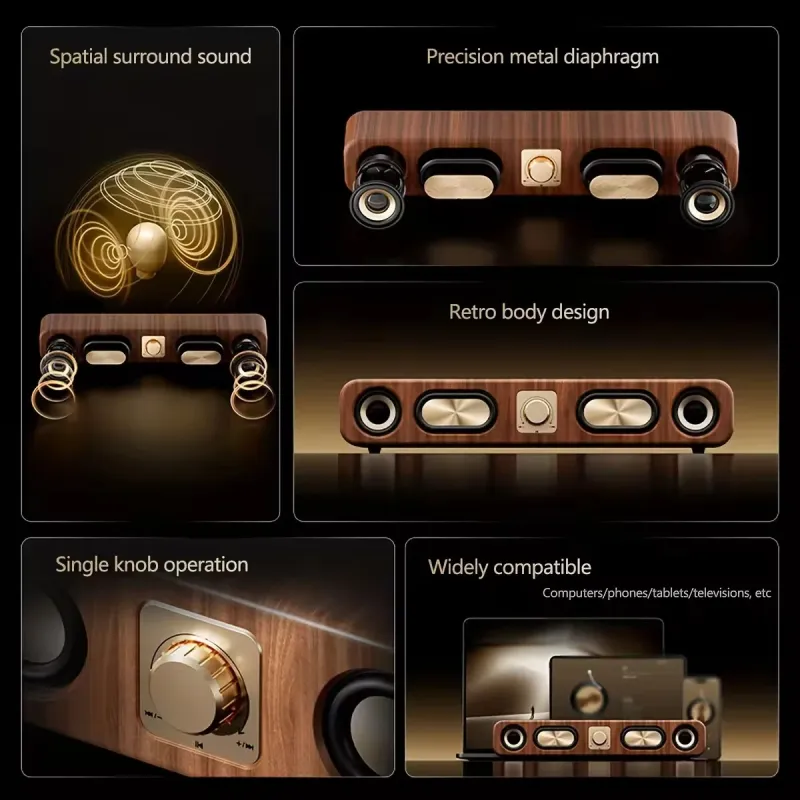 Vintage Wooden Speaker Wired bluetooth Soundbar with Four Units Surround Sound 2400mAh Battery Support U Disk TF Card AUX Playback FM Radio Desktop Subwoofer Speaker
