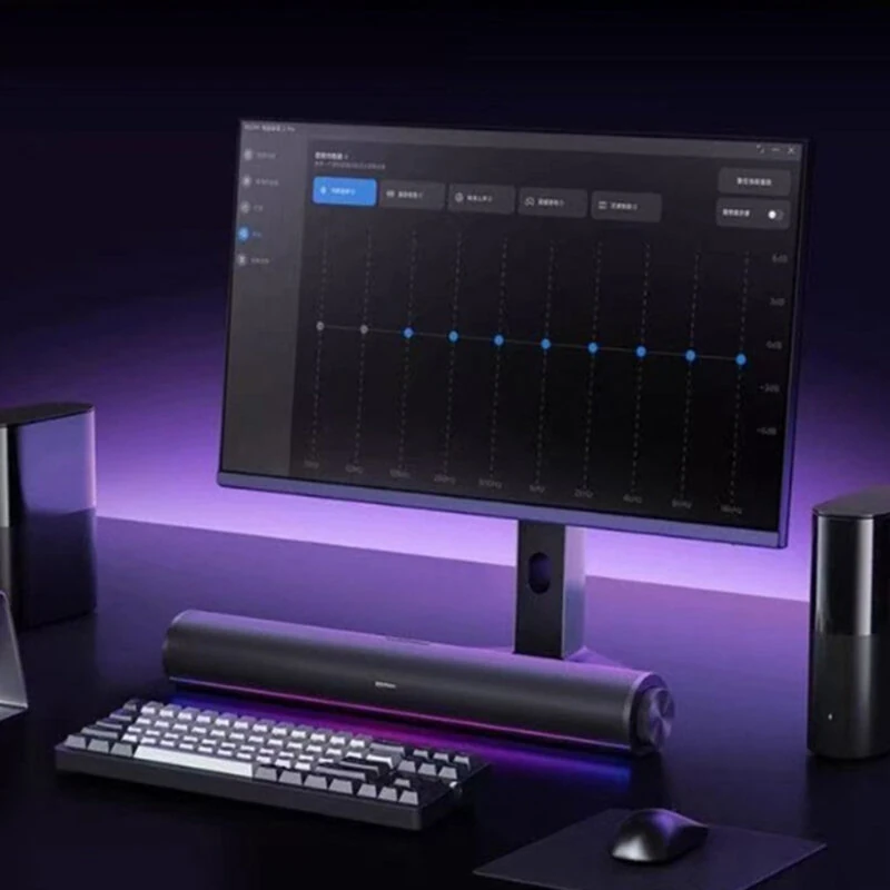 XIAOMI REDMI 20W Computer Speaker Wired bluetooth Soundbar with Side Multifunctional Knob Powerful Quad Drivers CGEC Certificated DSP Technology RGB Light Support USB AUX Playback USB Wired Desktop Soundbar