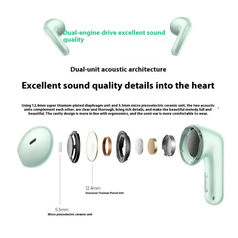 Xiaomi Redmi Buds 7S TWS Earbuds bluetooth V5.4 Earphone ANC Double Drivers 360 Surround Stereo Dual Mic AI Call Noise Cancelling 32H Playback Semi-in-ear Sports Headphones