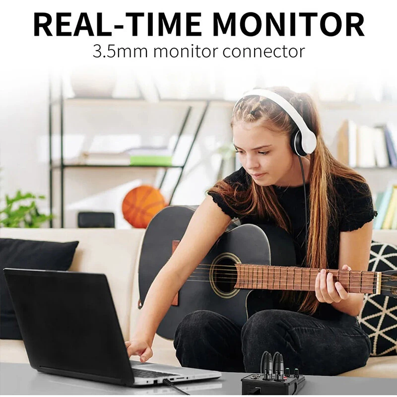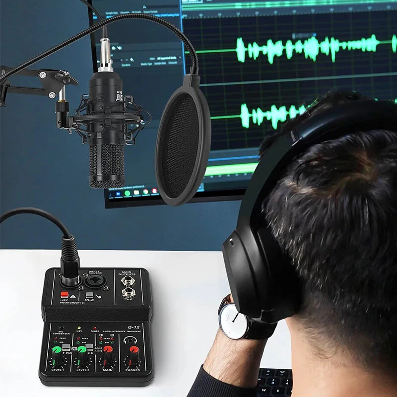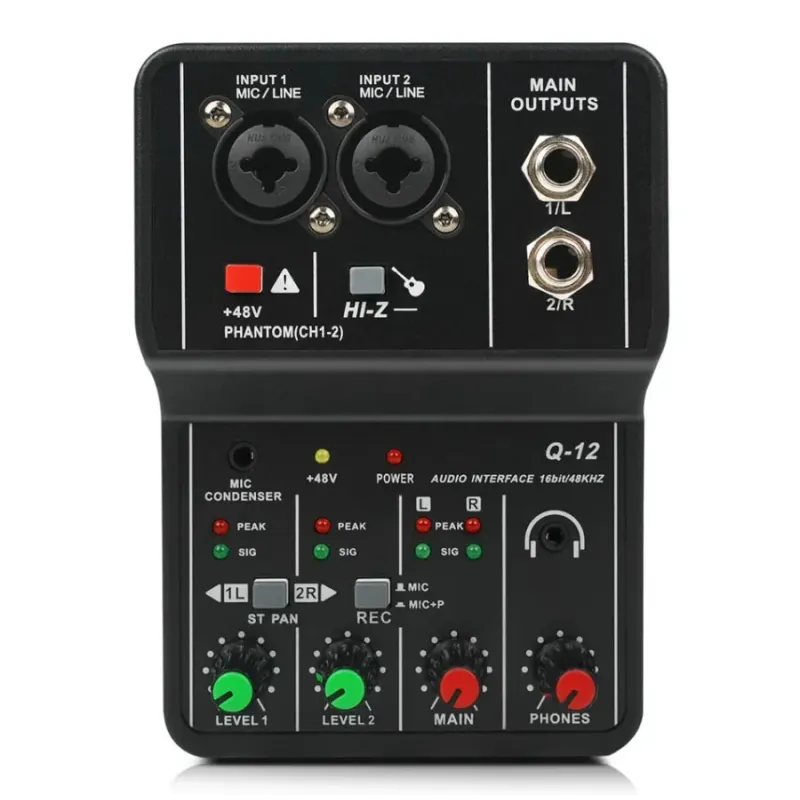 XTUGA Q-12 Professional Sound Card USB Audio Interface Mixer Sound Card 16bit 48kHz 48V Phantom Power for Recording Podcast Live Streaming Studio