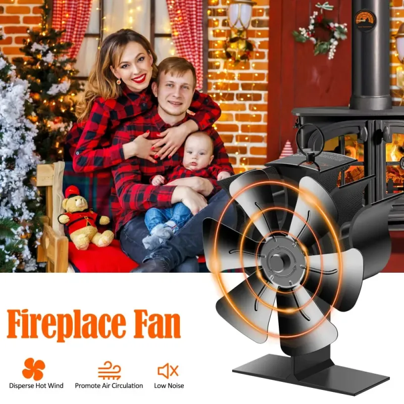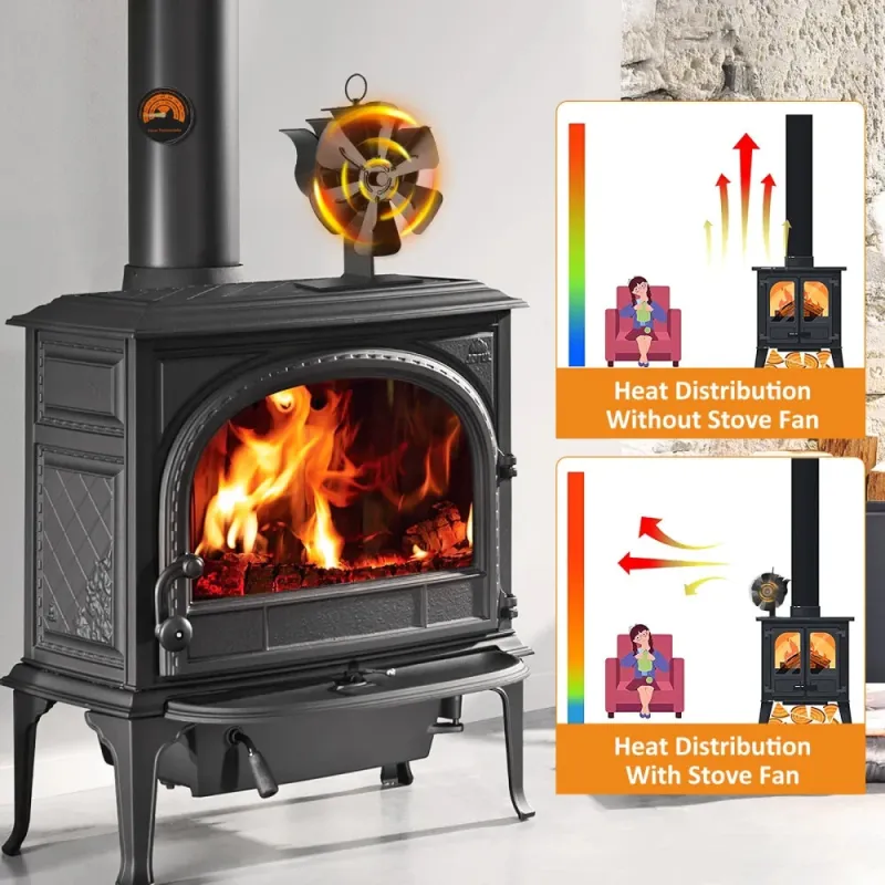 6-Blade Heat Powered Fireplace Fan Powered Fan With Temperature Display Strip Fireplace Fan Wood Fan Silent Operation Circulation