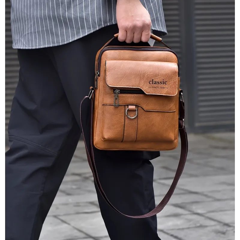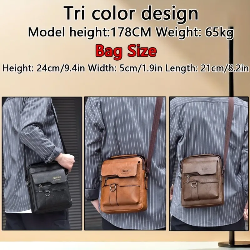 Men's Fashion PU Leather Shoulder Bag, Large Capacity Retro Business Crossbody Bag For Men Handbag Messenger Bag Waist Bag Office Use Bag Casual Day Bag, Multi-pocket Large Capacity, Waterproof and Wear-resistant