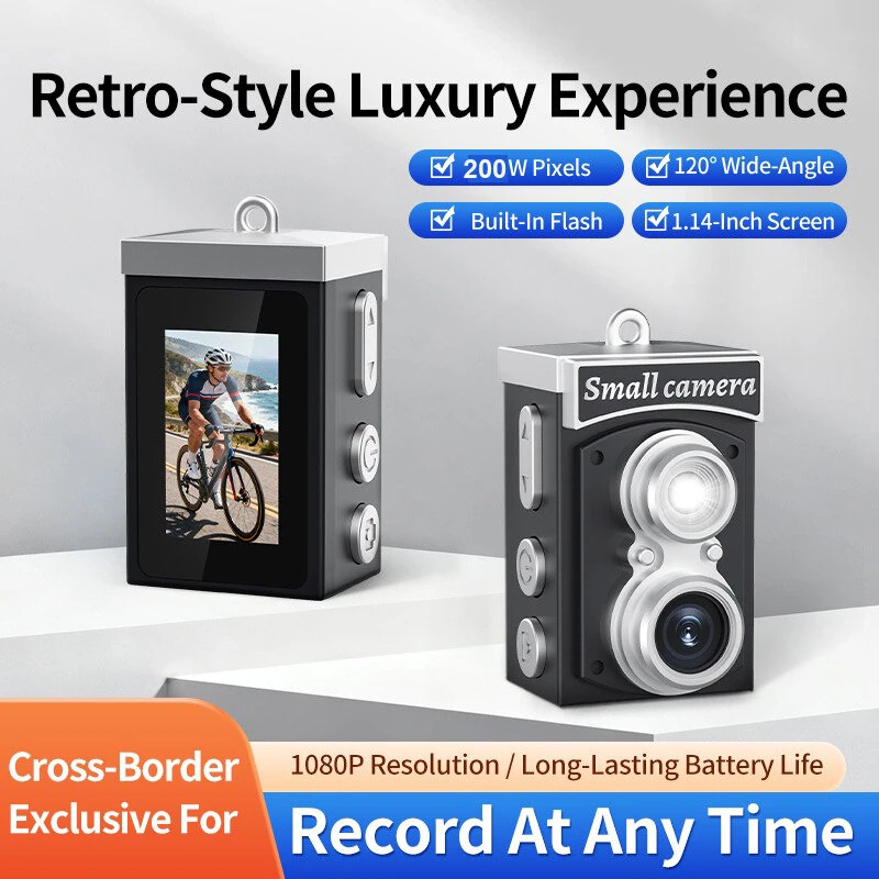 Retro Mini Digital Camera 200W Pixel 1080P HD Video 1.14 Inch Screen 120 Wide Angle Lens Vintage Style Portable Shooting Cam for Travel Vlogging
