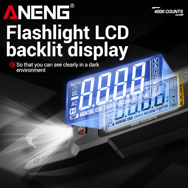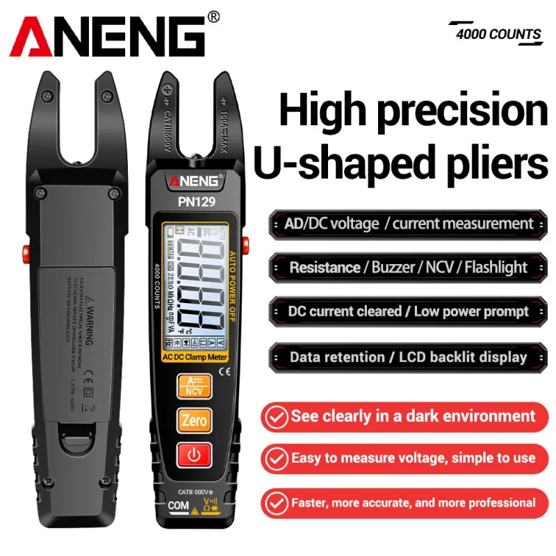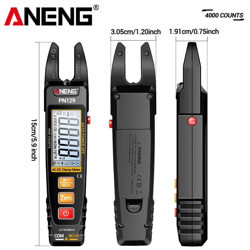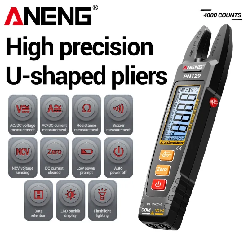 ANENG PN129 Digital Clamp Meter 600V 100A Multimeter with LCD Backlit Display Flashlight Auto Power Off NCV Data Retention