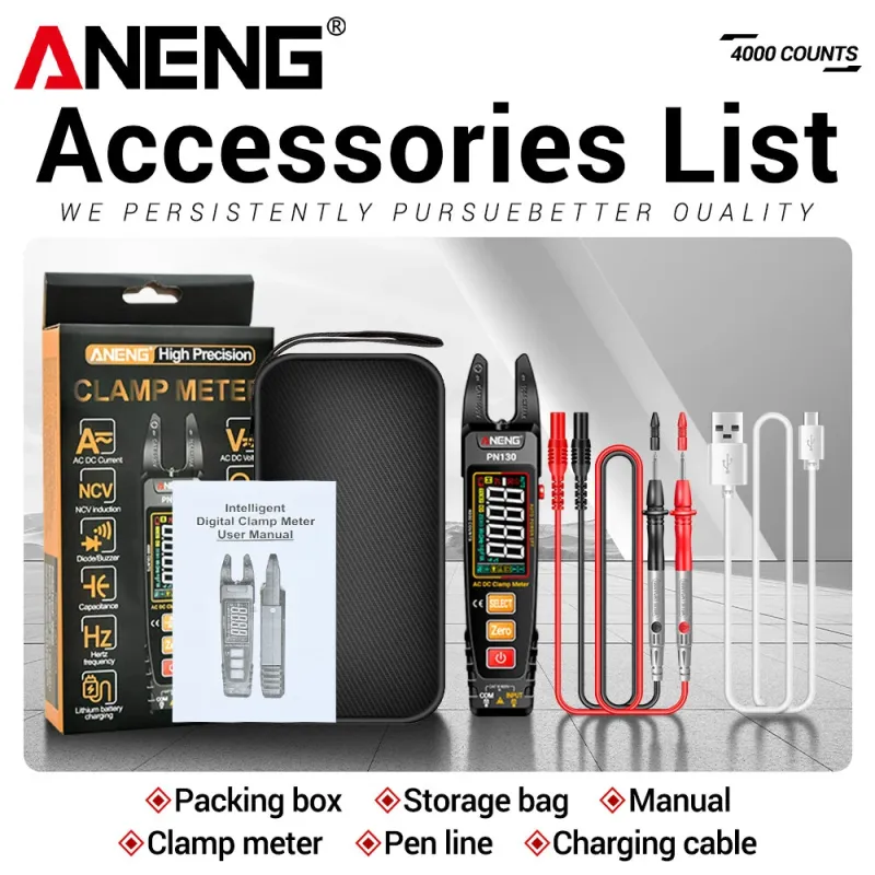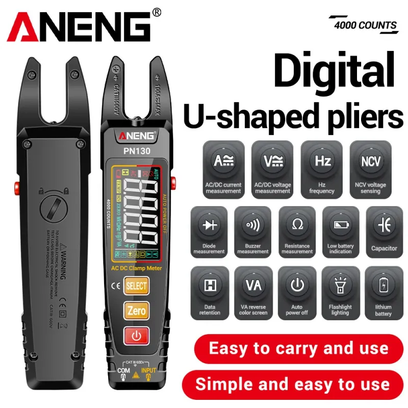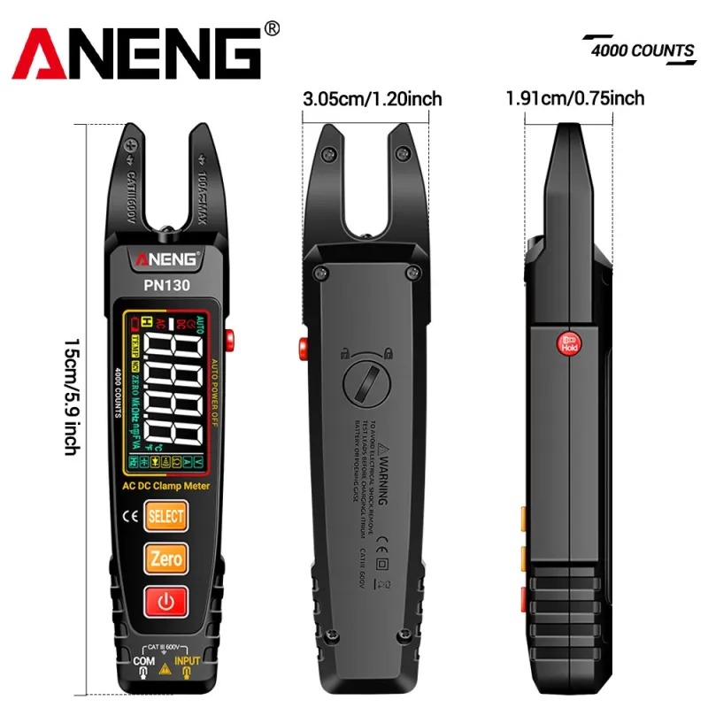 ANENG PN130 Digital Clamp Meter 4000 Counts AC DC Current Voltage Tester Auto Range VA Color Screen NCV CAT III 1000V Multifunction Electrical Tester with Flashlight Data Retention