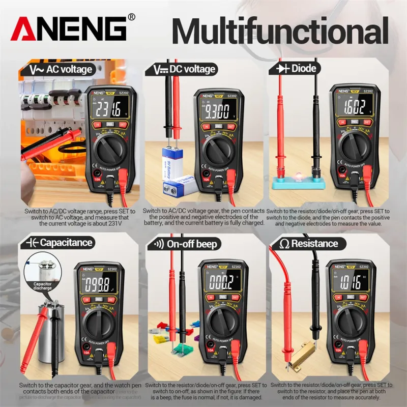 ANENG SZ202 Smart Digital Multimeter 4000 Counts Auto Range AC DC Voltage Current Resistance Capacitance NCV Detection Data Retention Auto Power Off Bright Screen