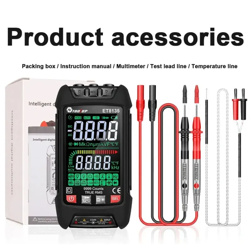 AV TOOLTOP ET8135 Multimeter Color LCD Display 9999 Counts True RMS Auto Range Voltage Current Resistance Diode Capacitor NCV Frequency Temperature Measurement Tool