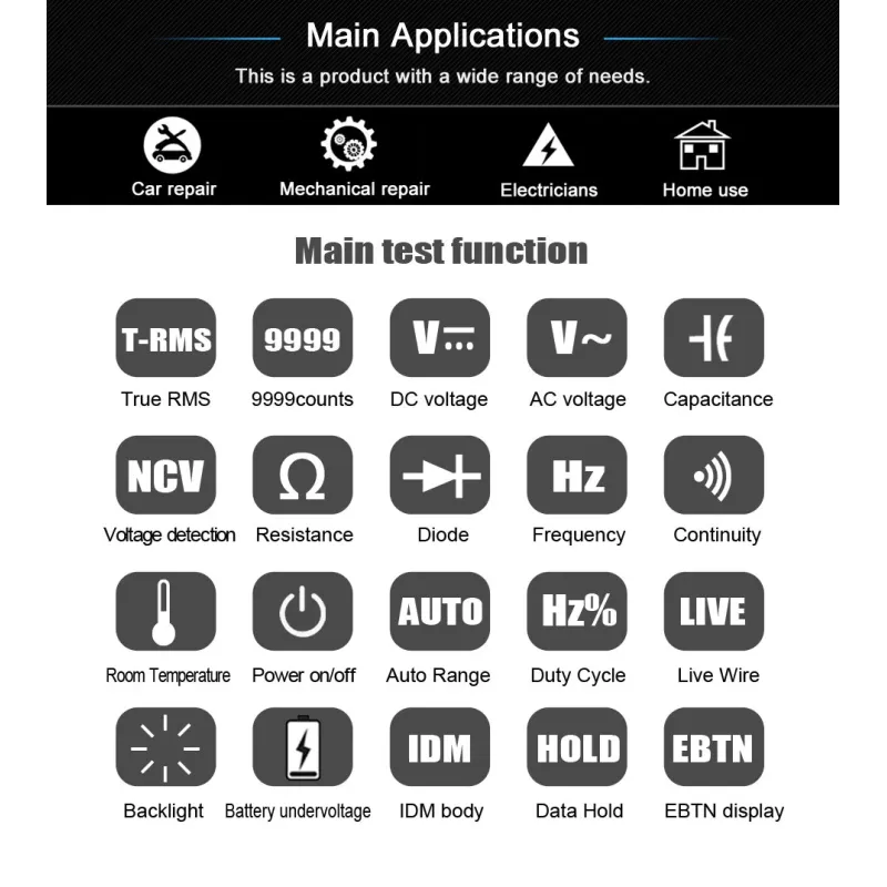 BSIDE A10 Mini Smart Multimeter 3.2-inch Color Screen Digital 9999 Counts True RMS Multimeter Built-in Rechargeable Lithium Battery Voltage Tester
