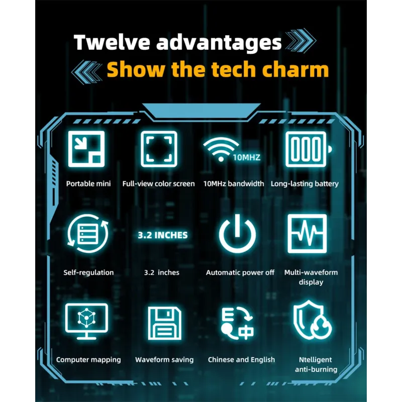BSIDE Mini OT3 Oscilloscope 3.2" TFT Color Screen 10MHz Bandwidth Real-Time Sampling 48MSa/s Portable Handheld Oscilloscope with Probe