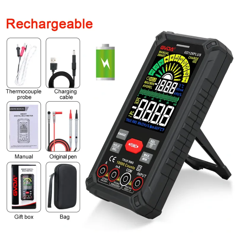 GVDA 128PLUS Smart Digital Multimeter 9999 counts LCD Color Display DC AC Voltage Current True RMS Multimetro Rechargeable Multitester