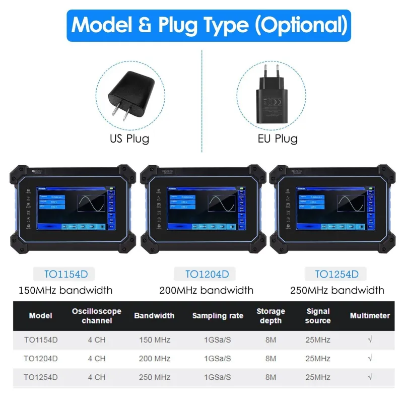 Hantek TO1254D Rechargeable Portable Oscilloscope Multimeter 4-Channel 150MHz Bandwidth 1GSa/S Sampling Rate 8M Storage Depth 25MHz Signal Source 7-inch TFT LCD Digital Storage Oscilloscope Arbitrary Waveform Generator with Tool Bag