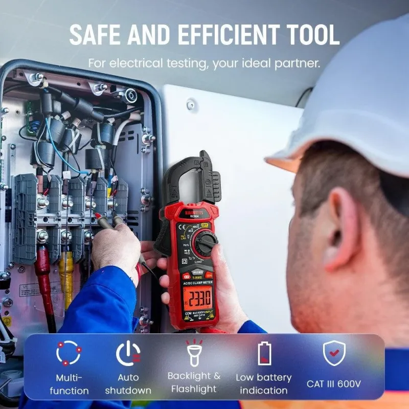 KAIWEETS KC604 Digital Clamp Meter True-RMS AC/DC Voltage Current Tester NCV Detection Auto Shut-Off LCD Backlight 1.1 Inch D-Shaped Jaw