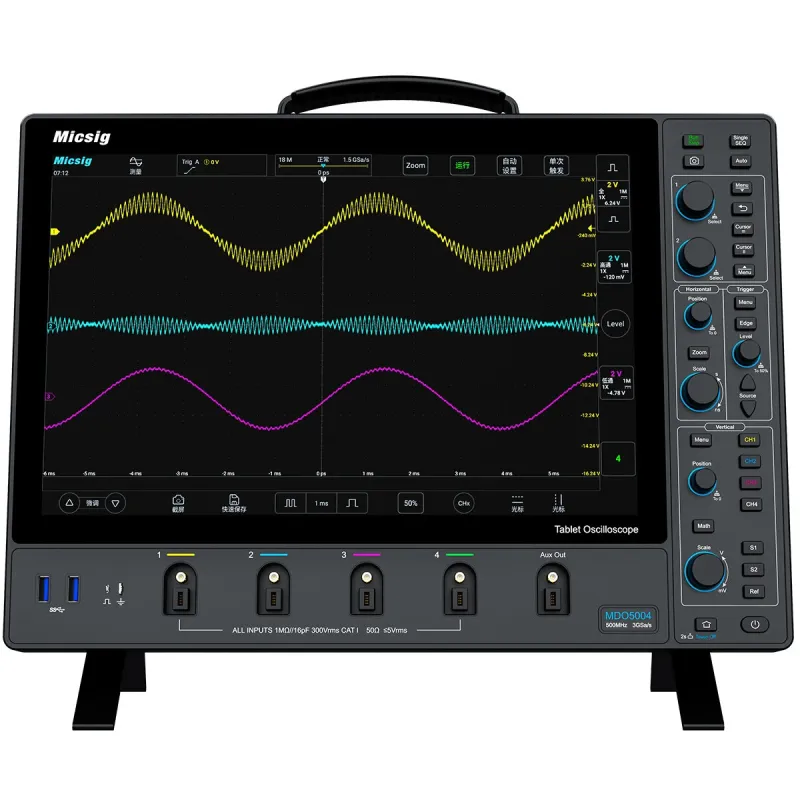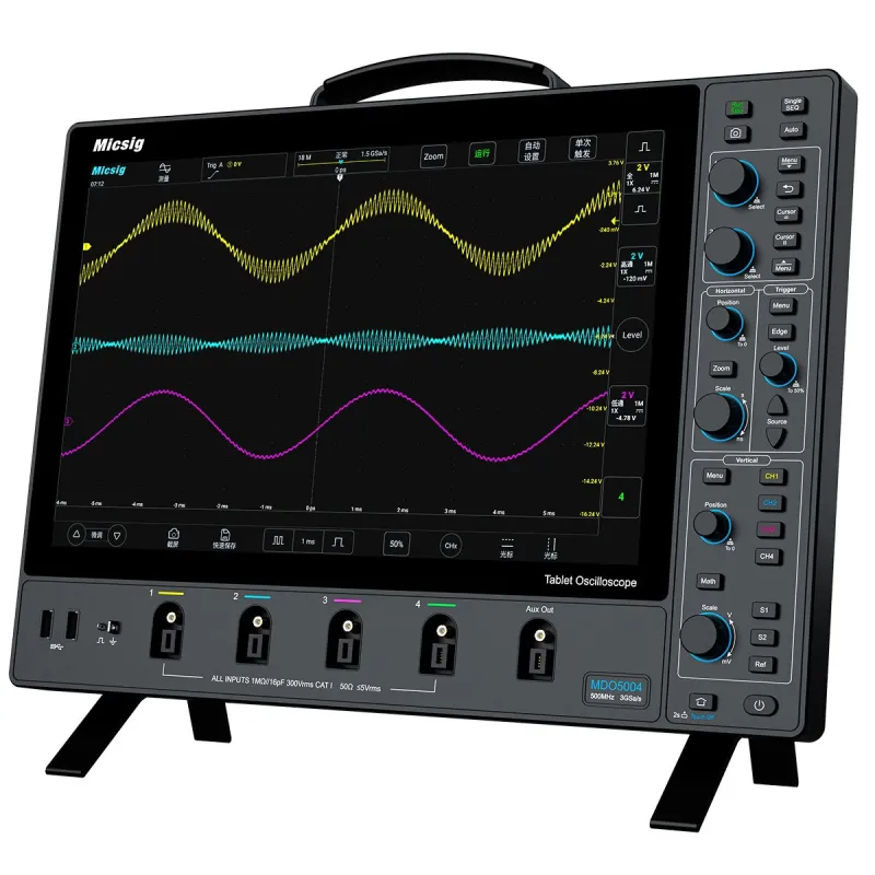 MICSIG Digital Oscilloscope MDO5004 MDO3504 MDO2504 500MHz 4 Channels 3GSa/s Sampling Rate 360Mpts Memory 14 Inch Touch Screen USB LAN High-Definition Multimedia Interface
