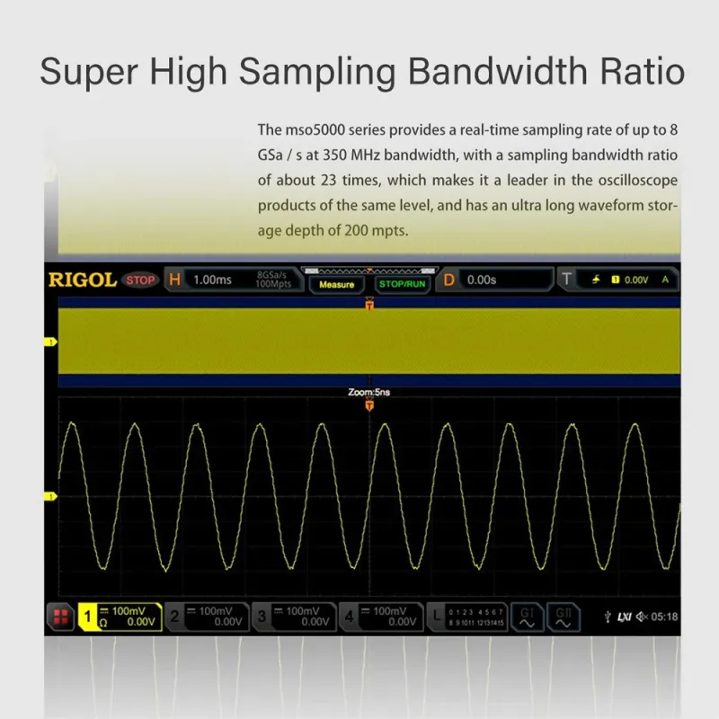 MSO5104 Mixed Signal Oscilloscope 100 MHz Bandwidth 4 Analog Channels 16 Digital Channels 8 GSa/s Sample Rate 200 Mpts Memory Depth High Speed Signal Capture