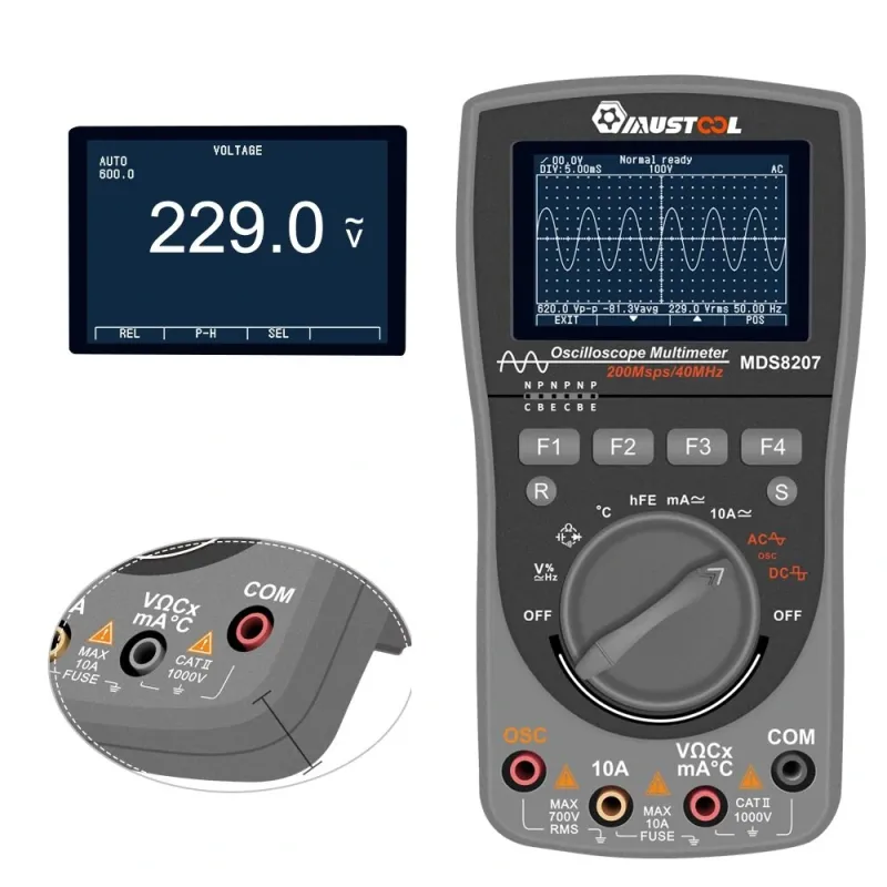 MUSTOOL MDS8207 Intelligent 2 in 1 Digital 40MHz 200Msps/S Oscilloscope 6000 Counts True RMS Multimeter