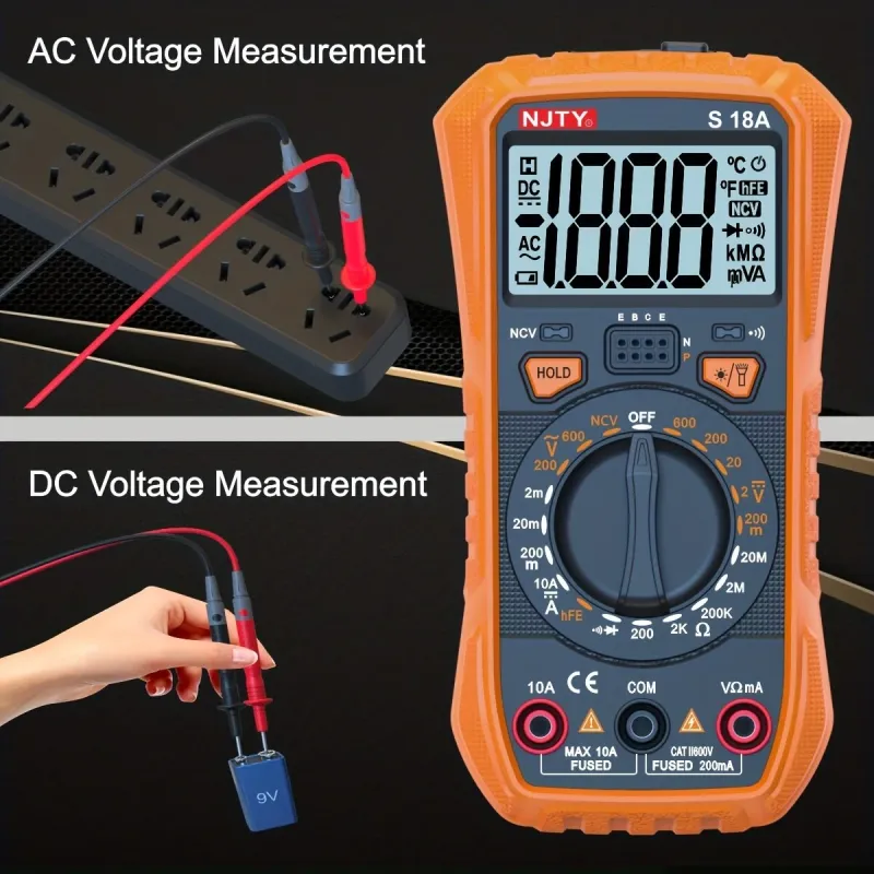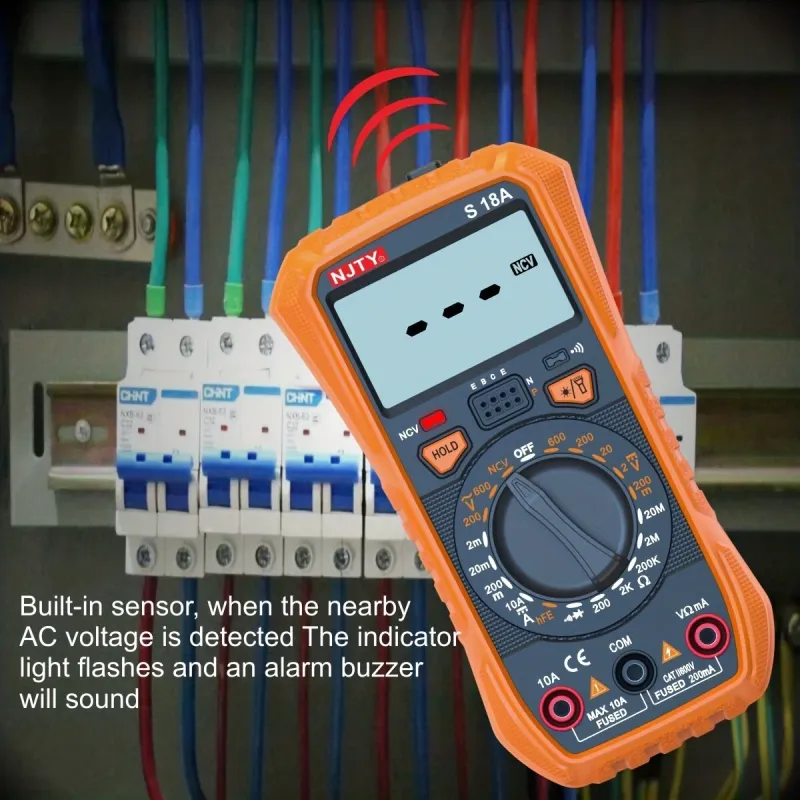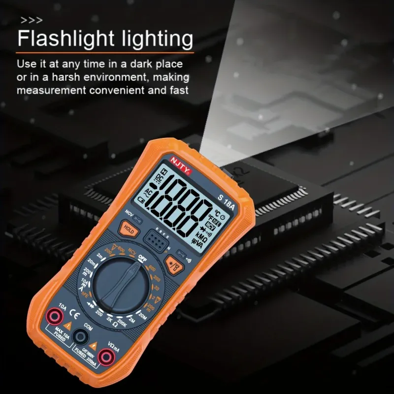 NJTY S18A Digital Multimeter High Precision Flashlight Backlit Display Non Contact Voltage Inspection Battery Powered Multimeter