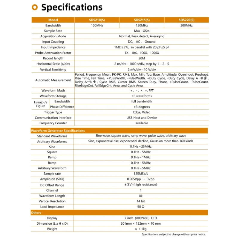 OWON SDS200 Series Digital Oscilloscope 2 Channels 1 GS/s Sample Rate 150-200 MHz Bandwidth USB 2.0 EU/US Plug High Precision Analysis Tool