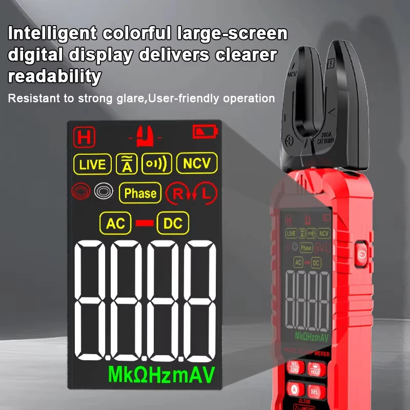 ZL33A ZL33B Rotating Clamp Meter 200A AC DC Current Voltage Tester 600V NCV Function Temperature Measurement Shockproof Case Compact Design Professional Electrician Tool