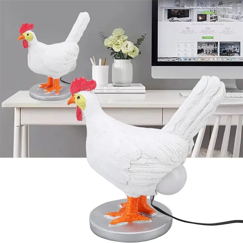 Chicken Egg Lamp Funny Chicken lamp with Egg in Butt LED Chicken Night Lights with USB Resin Warm Table Light Decor Birthday Christmas Gifts for Kids Friends