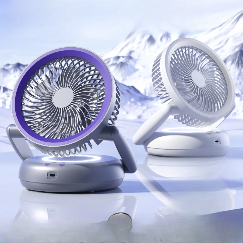 Foldable Wall-mounted Fan with Night Light 360 Rotational Airflow Desktop Electric Fan 5 Wind Speed Adjustable Air Circulation Fan for Dormitory Office