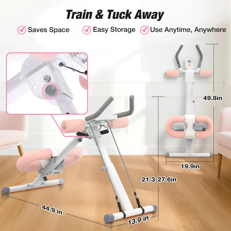 Warmounts 440lbs Capacity Foldable Adjustable Ab Trainer Core Workout Machine with Resistance Bands Men Women Exercise Equipment with Knee Protection for Home Gym Fitness
