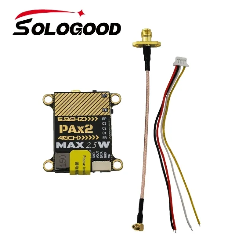 5.8Ghz SoloGood Max 2.5W 40CH OSD VTX 0/25/400/800/1500/2500mW Adjustable MMCX FPV Transmitter For DIY RC Long Range RC Drone