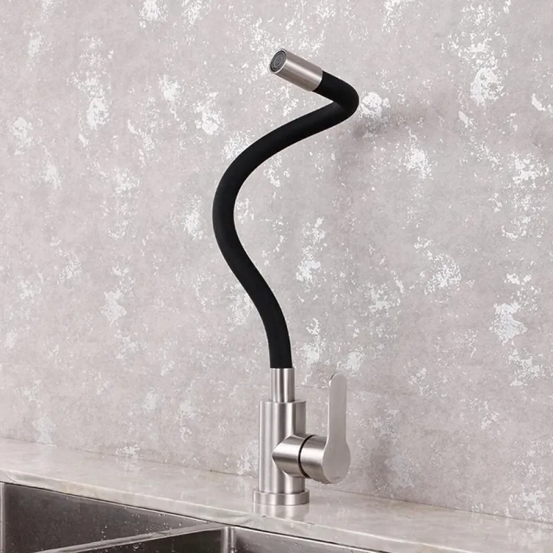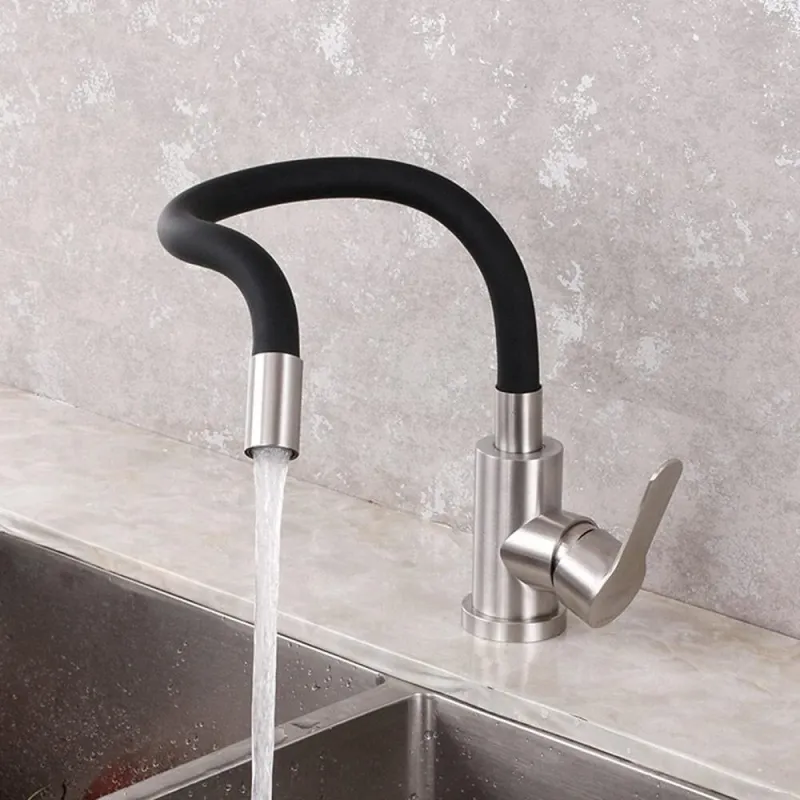 360 Rotatable 304 Stainless Steel Kitchen Silicone Tube Faucet Hot And Cold Brushed Universal Rotatable Vegetable Sink Faucet