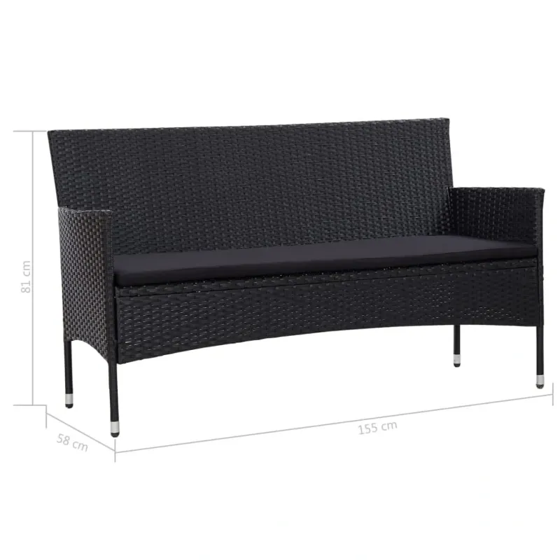 3-Seater Garden Sofa with Cushions Black Poly Rattan