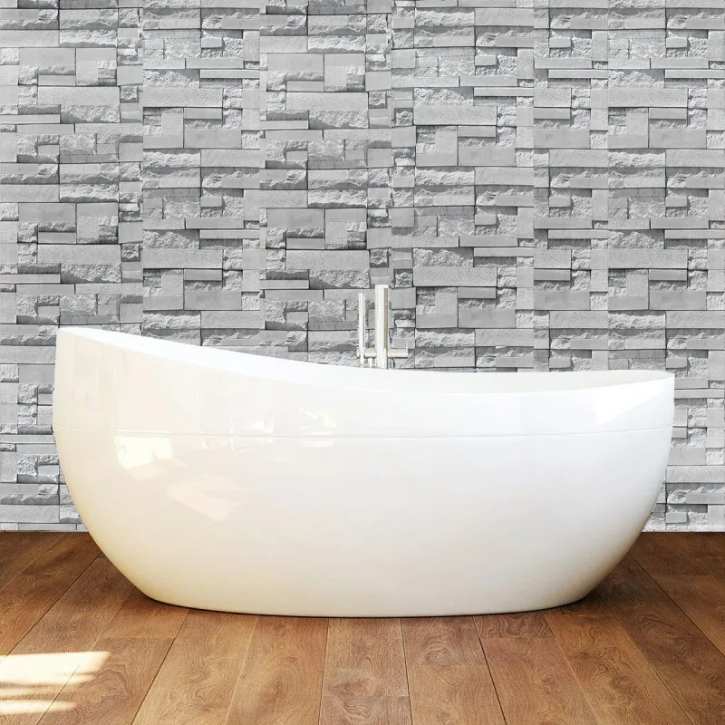 Gray Wallpaper Sticker Wall Cloth Wallpaper Self-Adhesive Waterproof Pvc Retro Brick Pattern Stone Wall Decoration