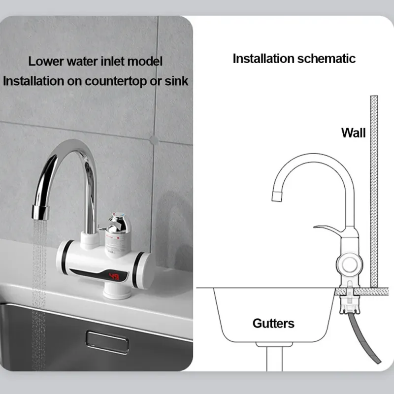 Smart Digital Instant Electric Water Heater Faucet Temperature Adjustable Tankless Water Heater Bottom Inlet Fast Heating Faucet Kitchen Bathroom