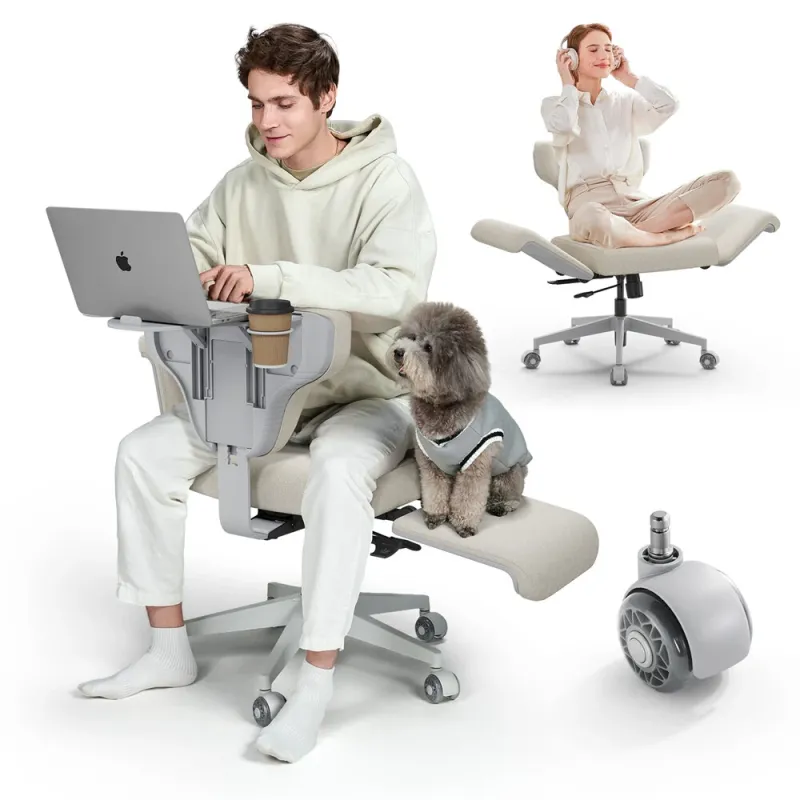 NEWTRAL FREEDOM-X PRO Fabric Waterproof Multi-Posture Cross-Legged Chair with Armrest Transparent Skate Wheels