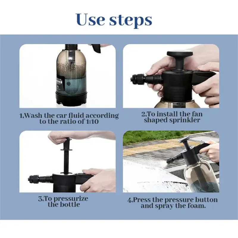 2L Foam Watering Can Transparent HDPE Air Pressure Pump Sprayer 1:50 Ratio Car Wash and Garden Use
