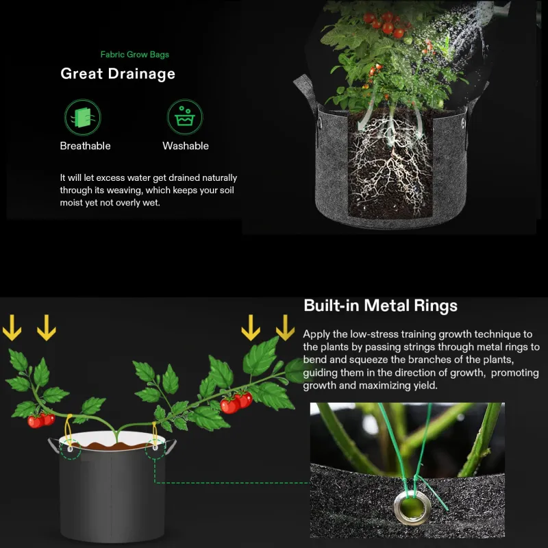 1PCS 5/10 Gallon Grow Bags Heav Duty Thickened Nonwoven Plant Fabric Pots With Handals