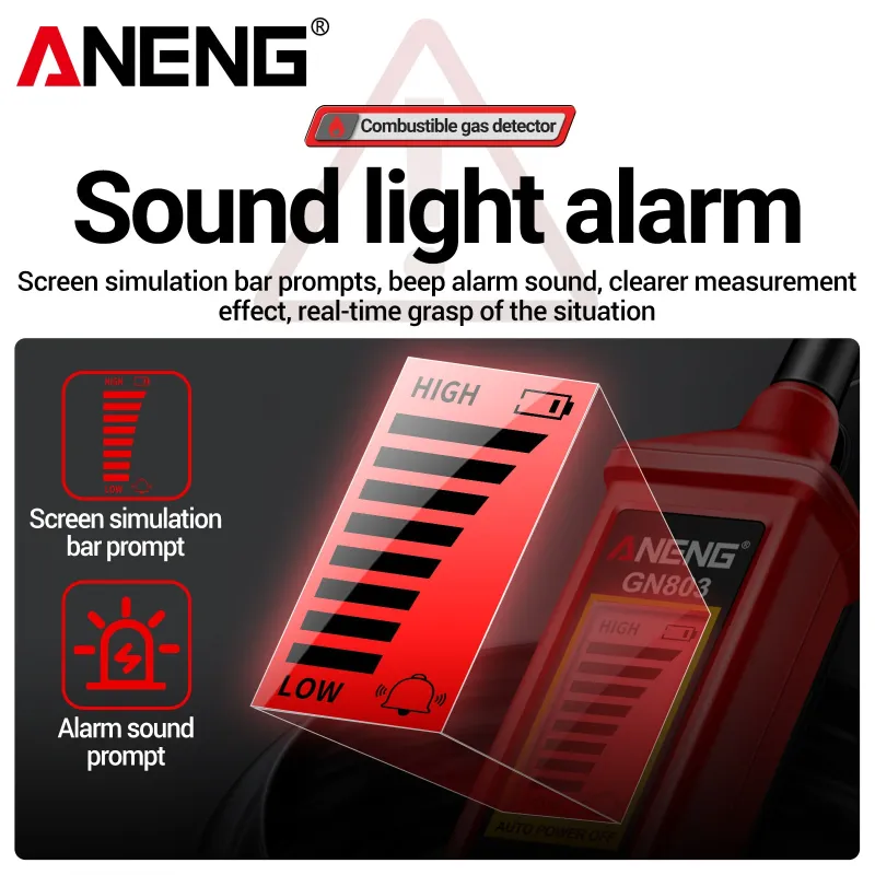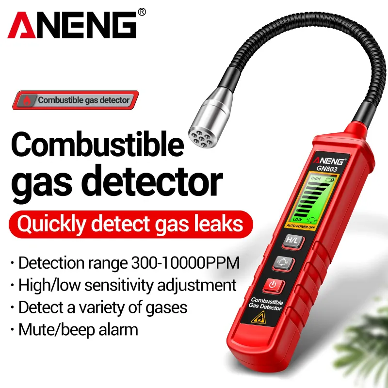ANENG GN803 Combustible Gas Leak Detector High Sensitivity 300-10000PPM Alcohol Ethanol Detection Adjustable Sensitivity All-Metal Bendable Hose Safe and Accurate Home Safety Equipment