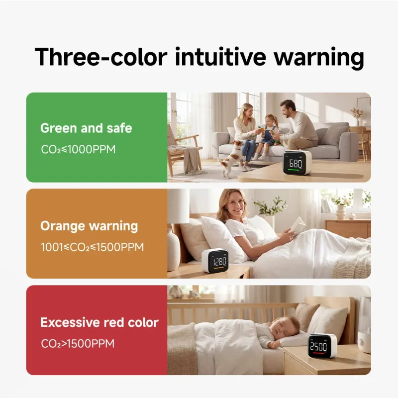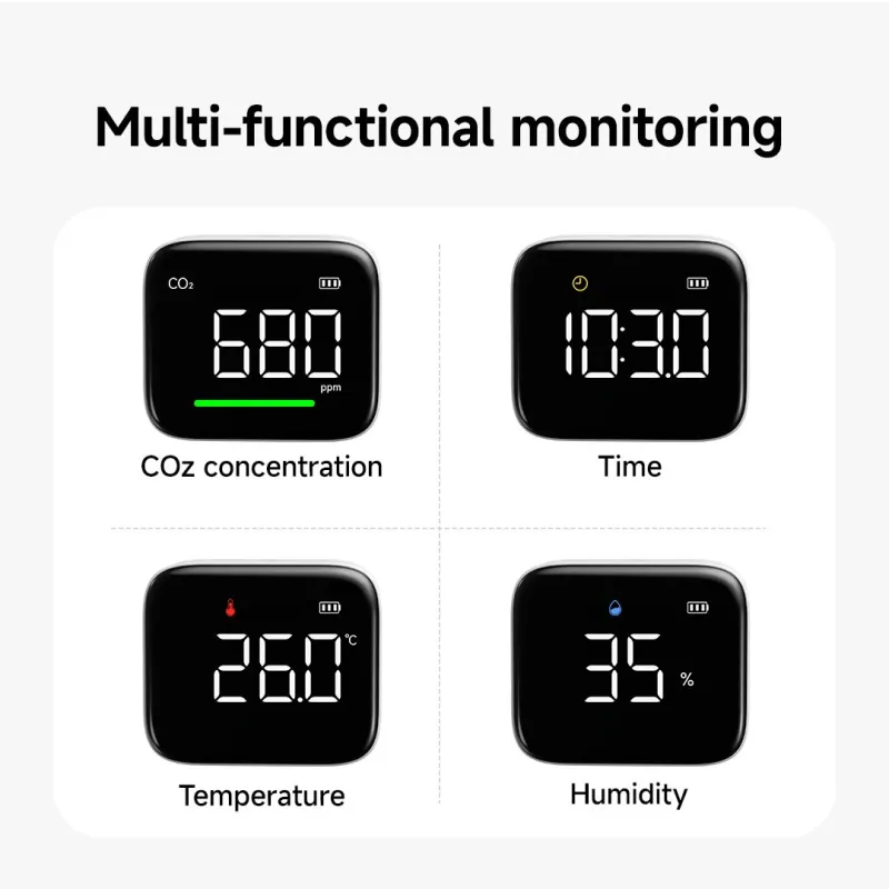 Atuman CF1 Multifunctional Carbon Dioxide Tester CO2 Temperature Humidity Display Clock display 3 inch Screen High Accuracy Type-C Charging 2200mAh Battery