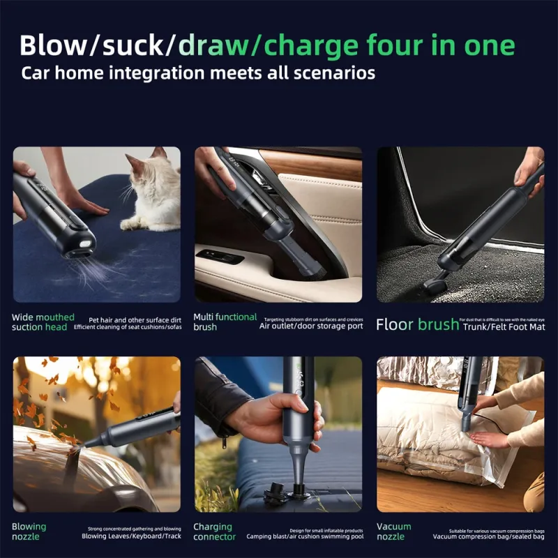 Tevorex Cordless Handheld Car Vacuum with Green Light,16000PA Suction,USB Rechargeable, Brushless Motor, Digital Display, Blow & Suction