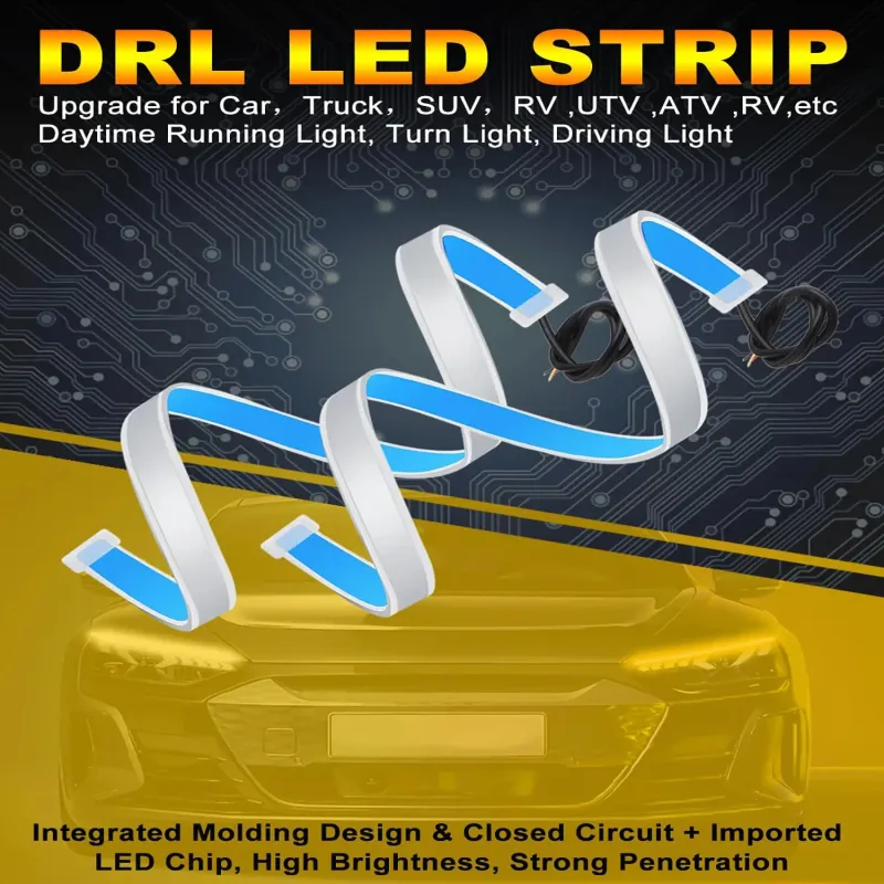2pcs 12V 60cm Car LED thin Light Bar Dual-Color DRL Flowing Turn Signal Light Strips LED Car Daytime Running Light Flexible Headlights Brake Strip Lights Turn Signal