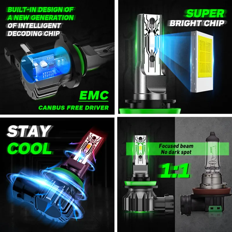 FATEEYE A700-F1 DC 9V-18V Car LED Headlight Bulbs 10000LM/ Pair for Car Modification 6500K Front LED Headlamp High Low Beam