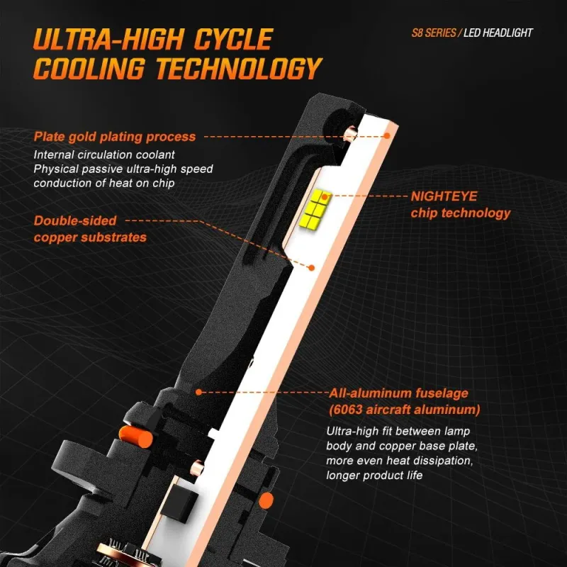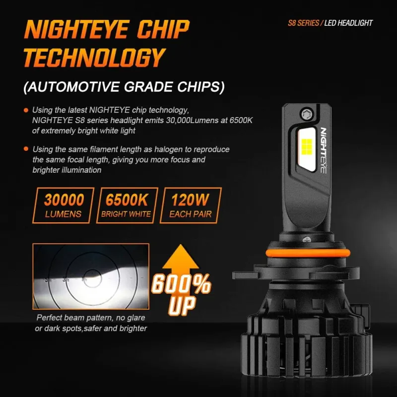 NightEye Auto Lighting 120W CSP LED Headlight Bulbs 30000LM 6000K Cool White IP68 Waterproof H1 H4 H7 H11 9005 9006 9012 Automotive Lighting Aluminum Copper