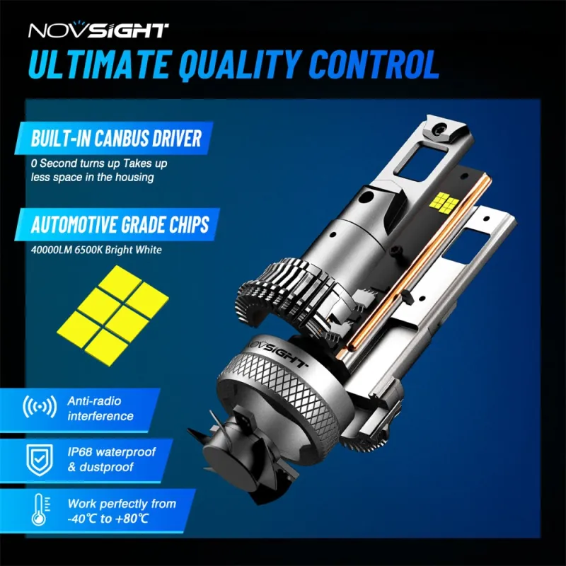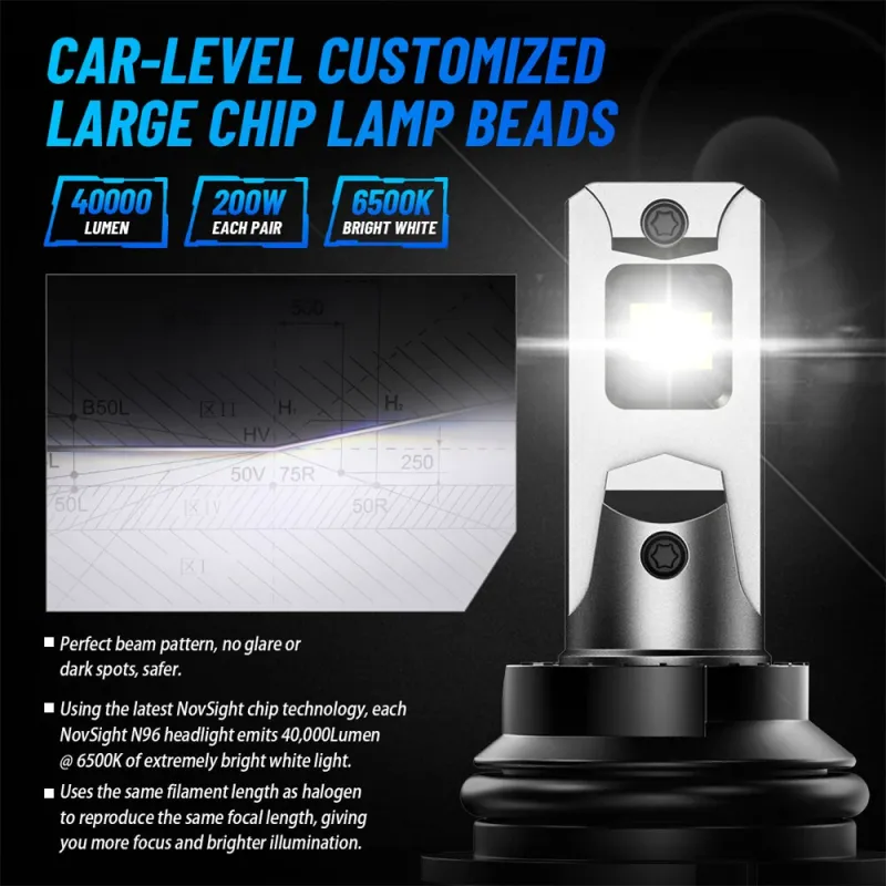 NOVSIGHT A500-N96 High-end Wiring Harness Model Built-in Driver 200W 40000LM Car Headlight