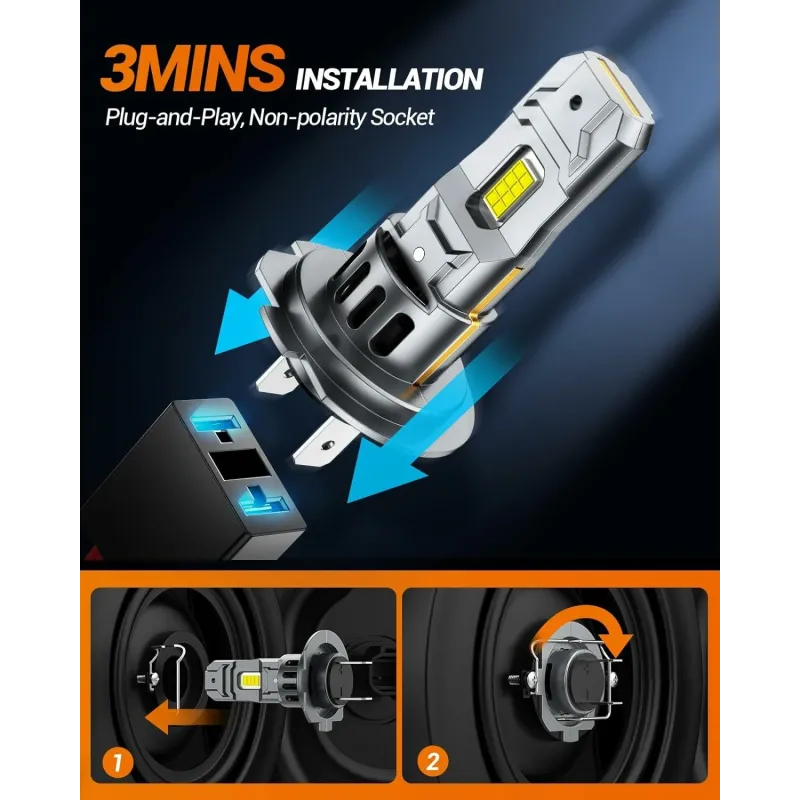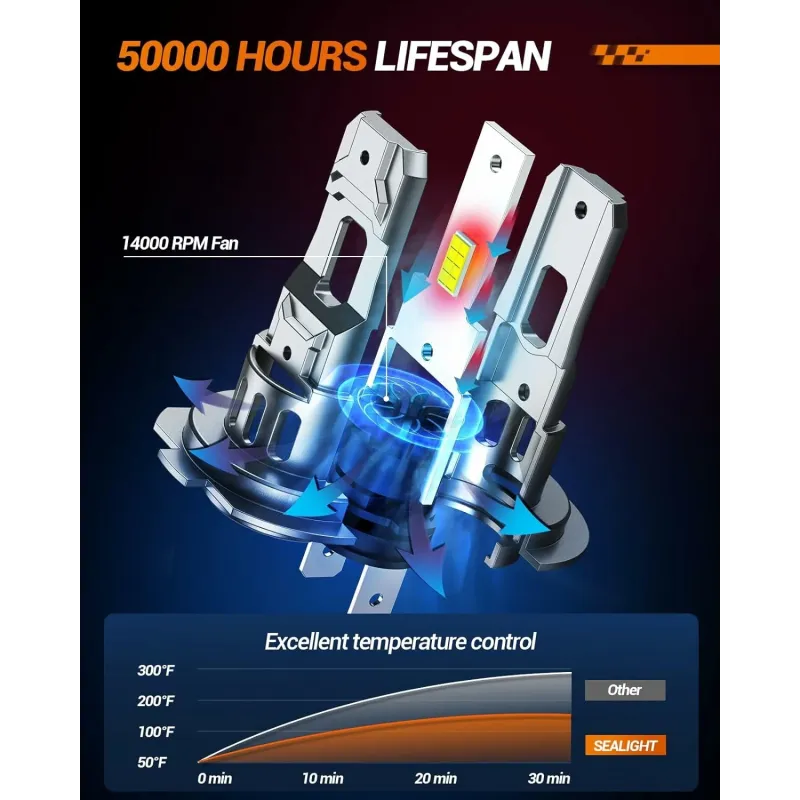 SEALIGHT S2S-H7 Pair Car Front LED Headlight Car Headlamp Hi/Low Beam Super Brightness Light Bulb 6500K Cool White