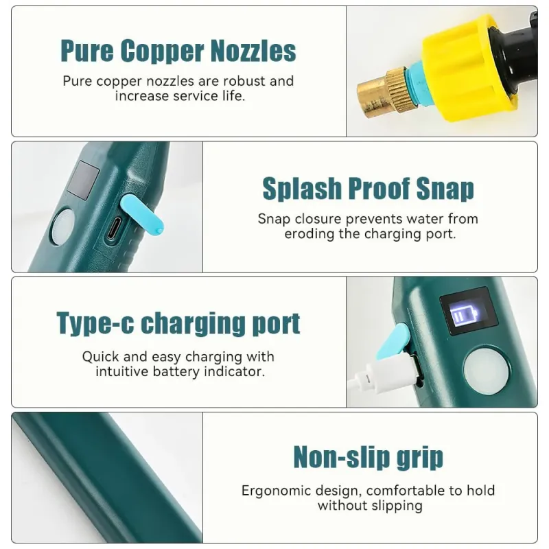 2400mAh Pressure Electric Sprayer with Battery Level Indicator Garden Spray Irrigation Tool USB Rechargeablewith 3 Nozzles for Yard Plant Garden Watering