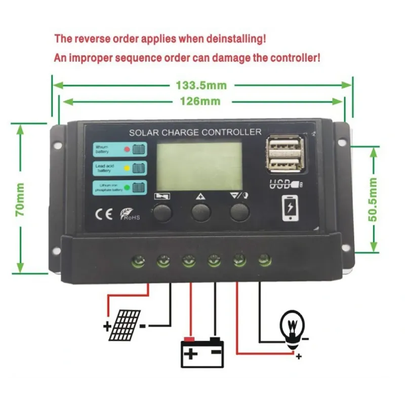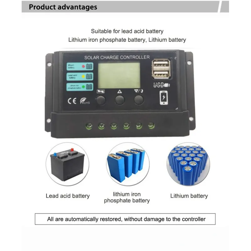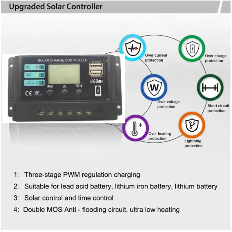 12V 24V 10A 20A 30A 40A 50A PWM Solar Charge Controller LCD Display